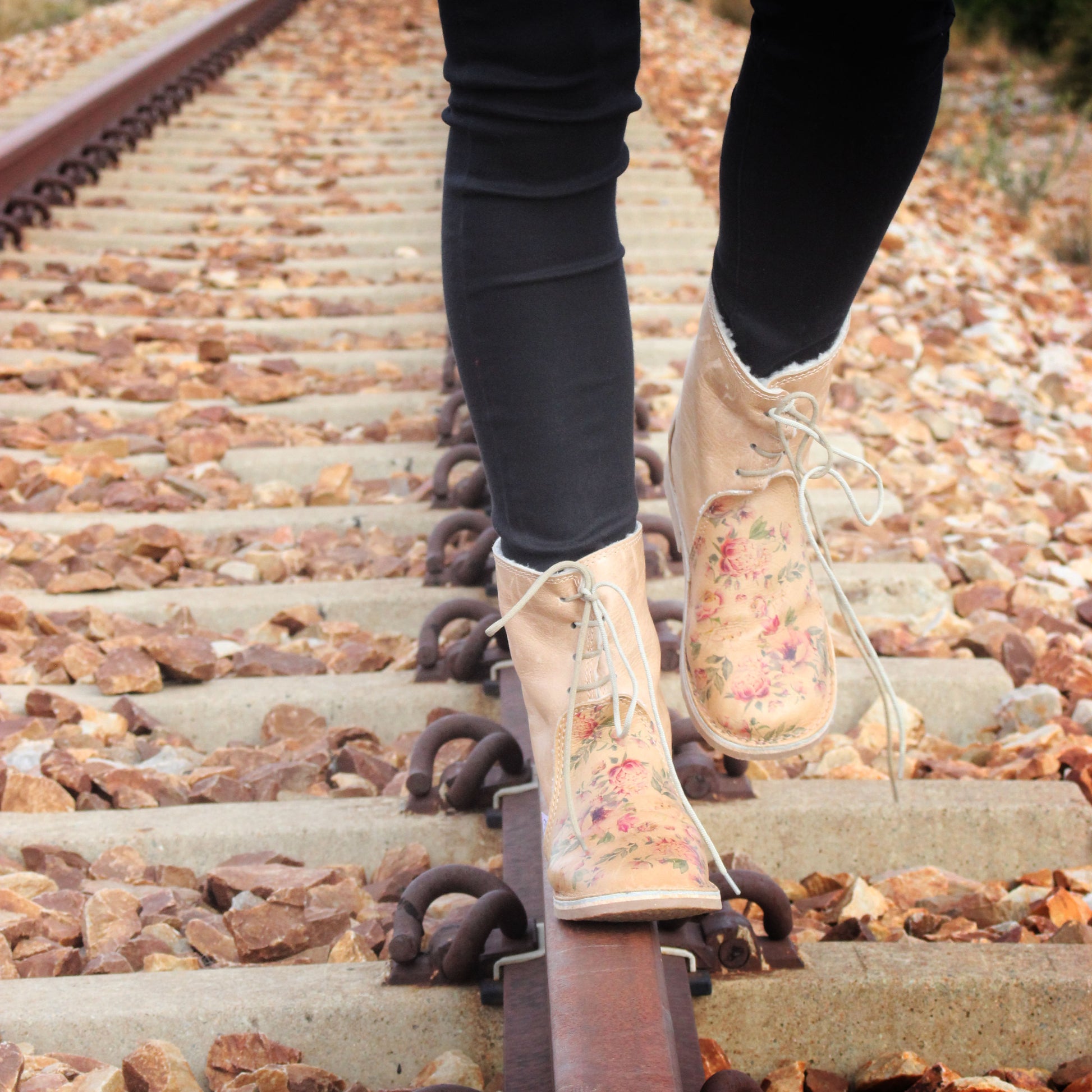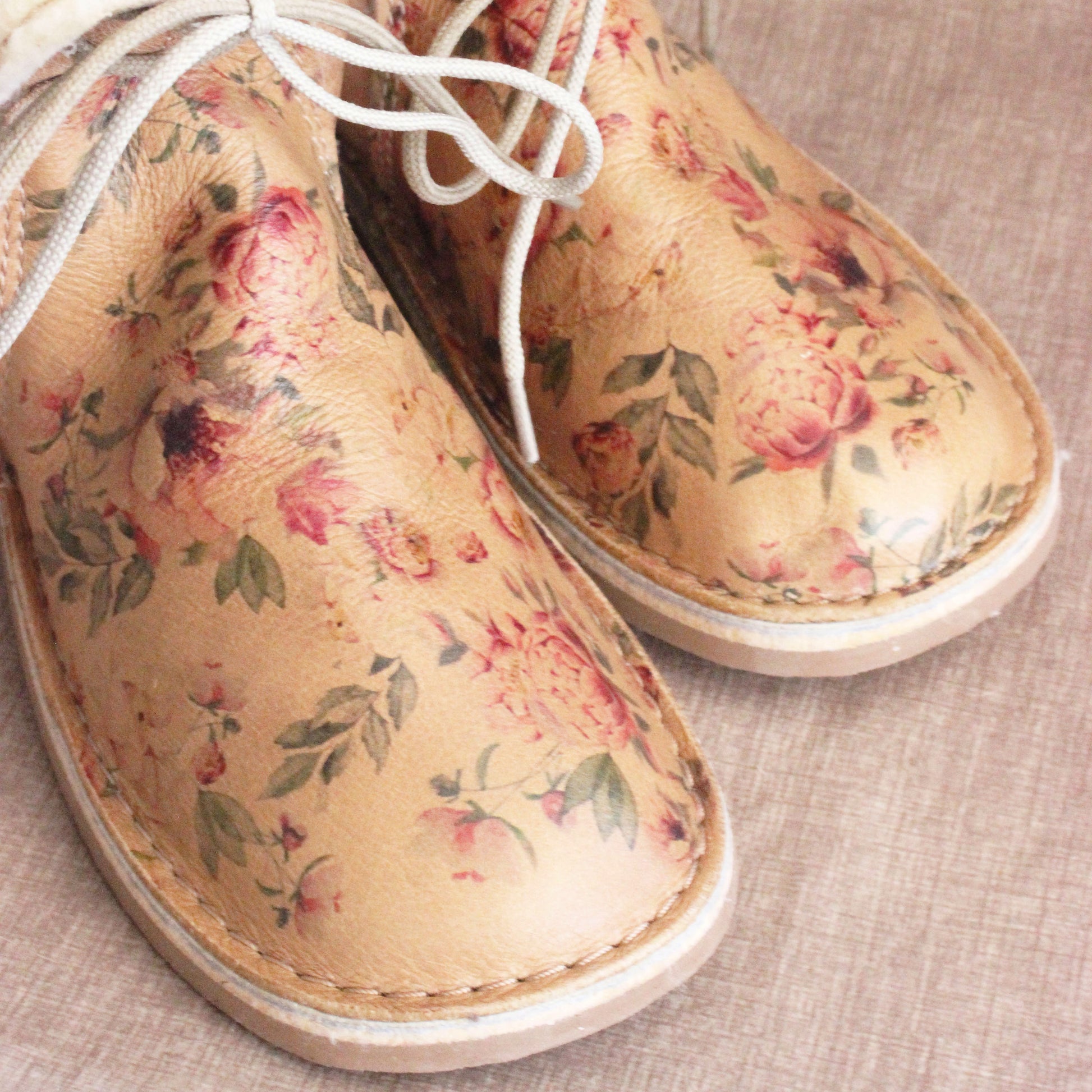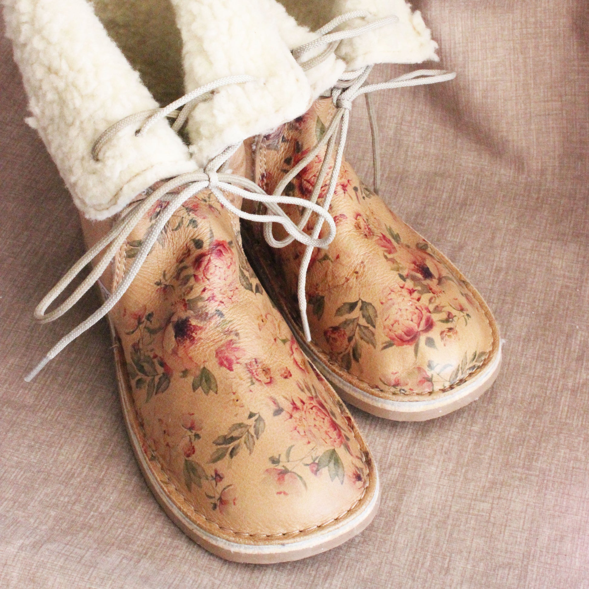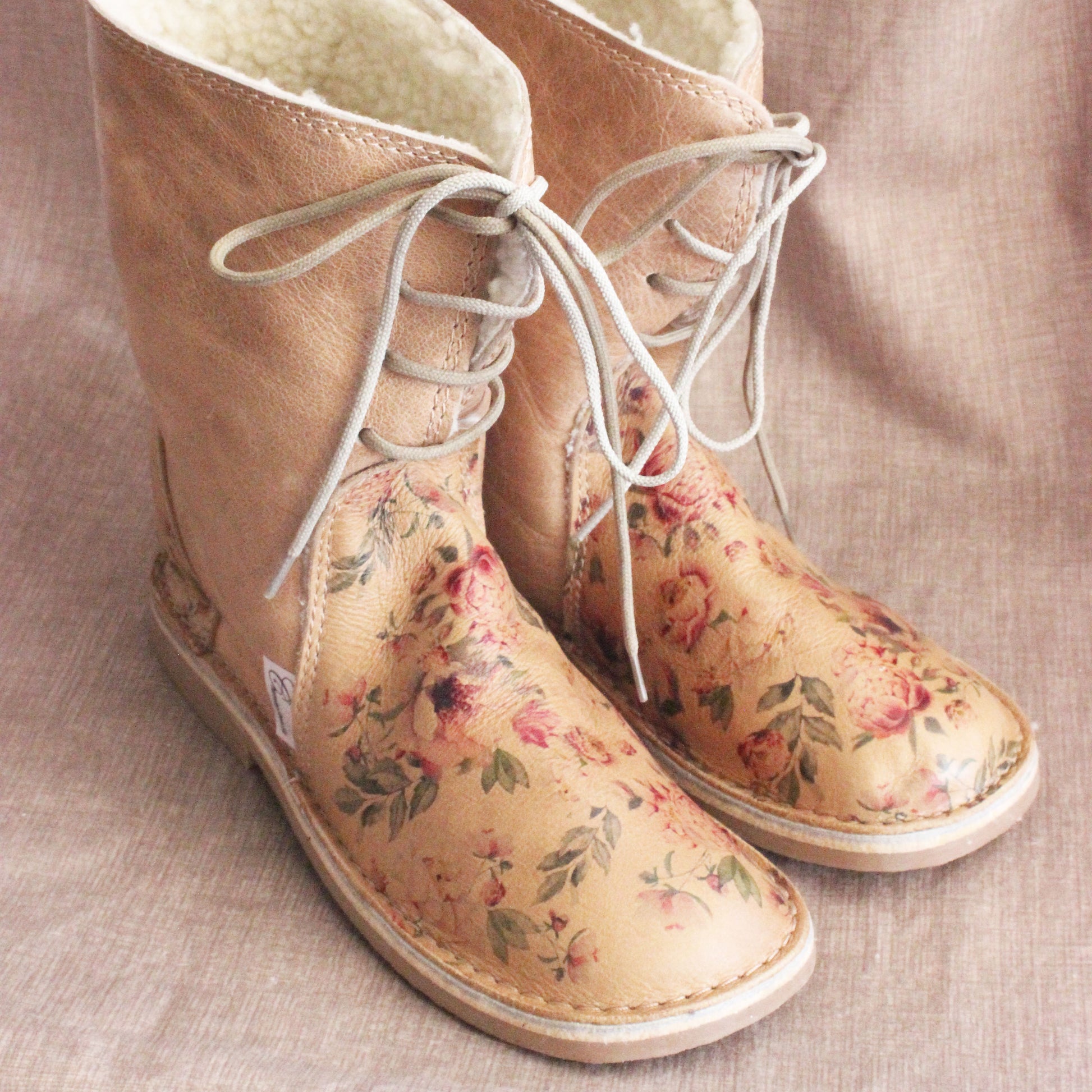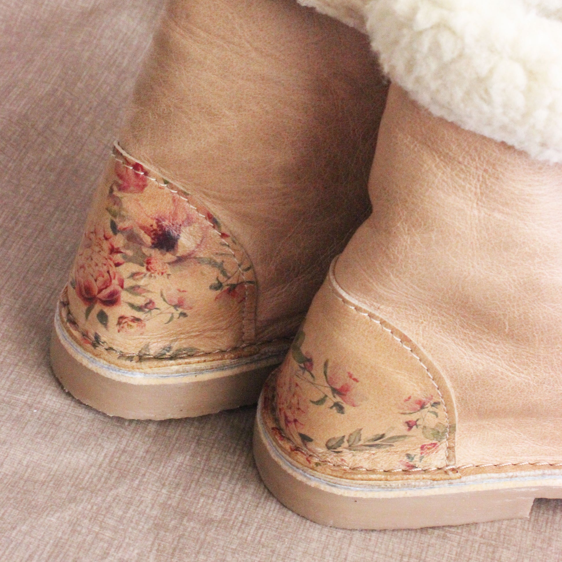 Winter warmer made from genuine Shiduli cowhide in printed beige color to keep your feet warm in style!