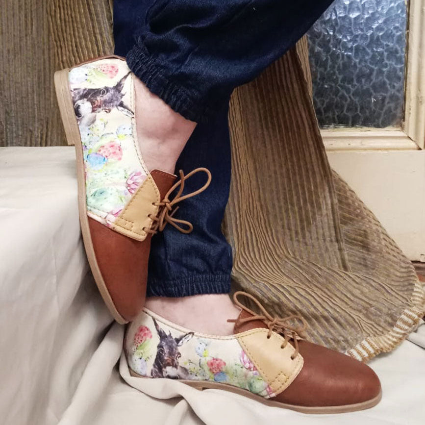 Genuine authentic handcrafted 'veter' city vellie with designer print on high quality fabric sides combined with genuine Shiduli ox leather closed lace-up design for that special unique look.